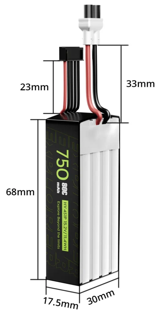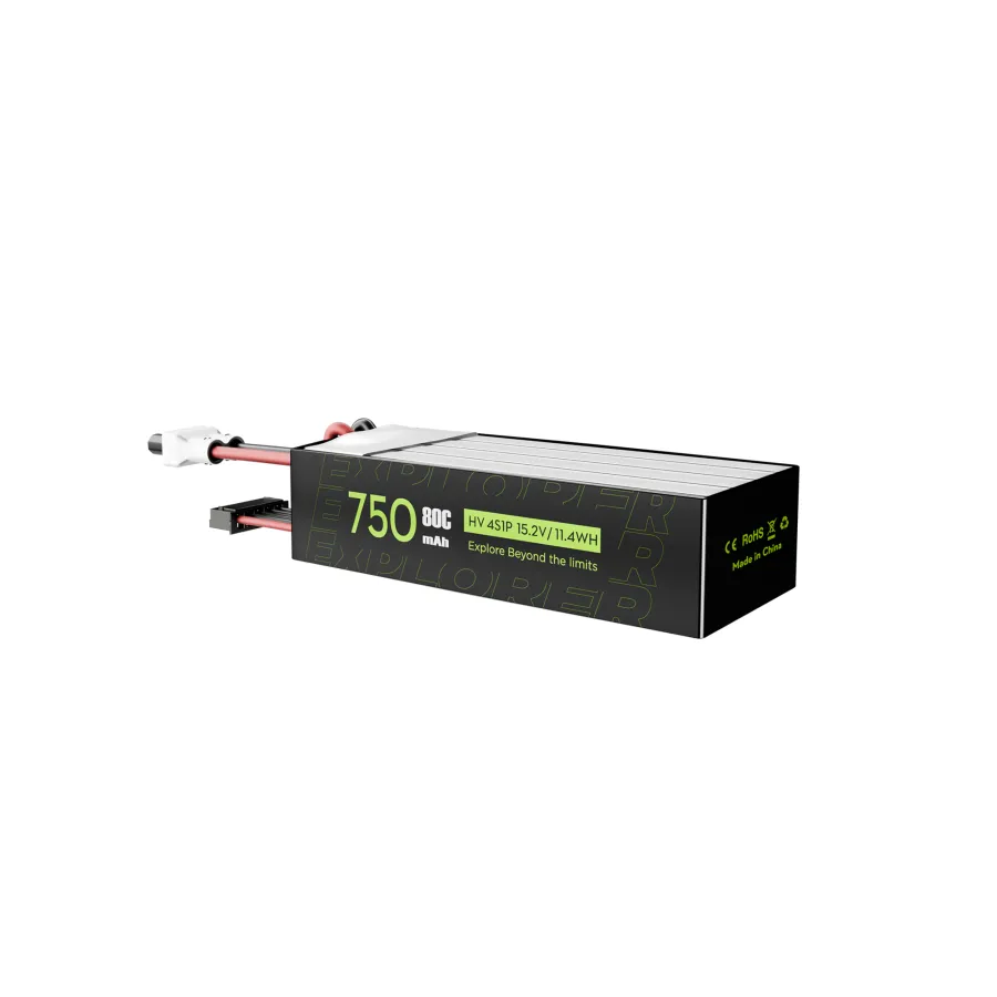 Flywoo Explorer 750mAh LiHV 4S 80C battery with XT30 connector - lightweight, reliable and provides longer flight time for small drones.