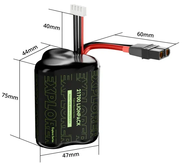 Flywoo Explorer 3S1P P45D 21700 4500mAh BAK LiPo baterija su XT60 jungtimi – kompaktiška, galinga ir patikima baterija dronams bei RC įrangai.