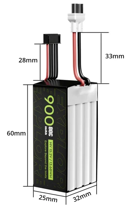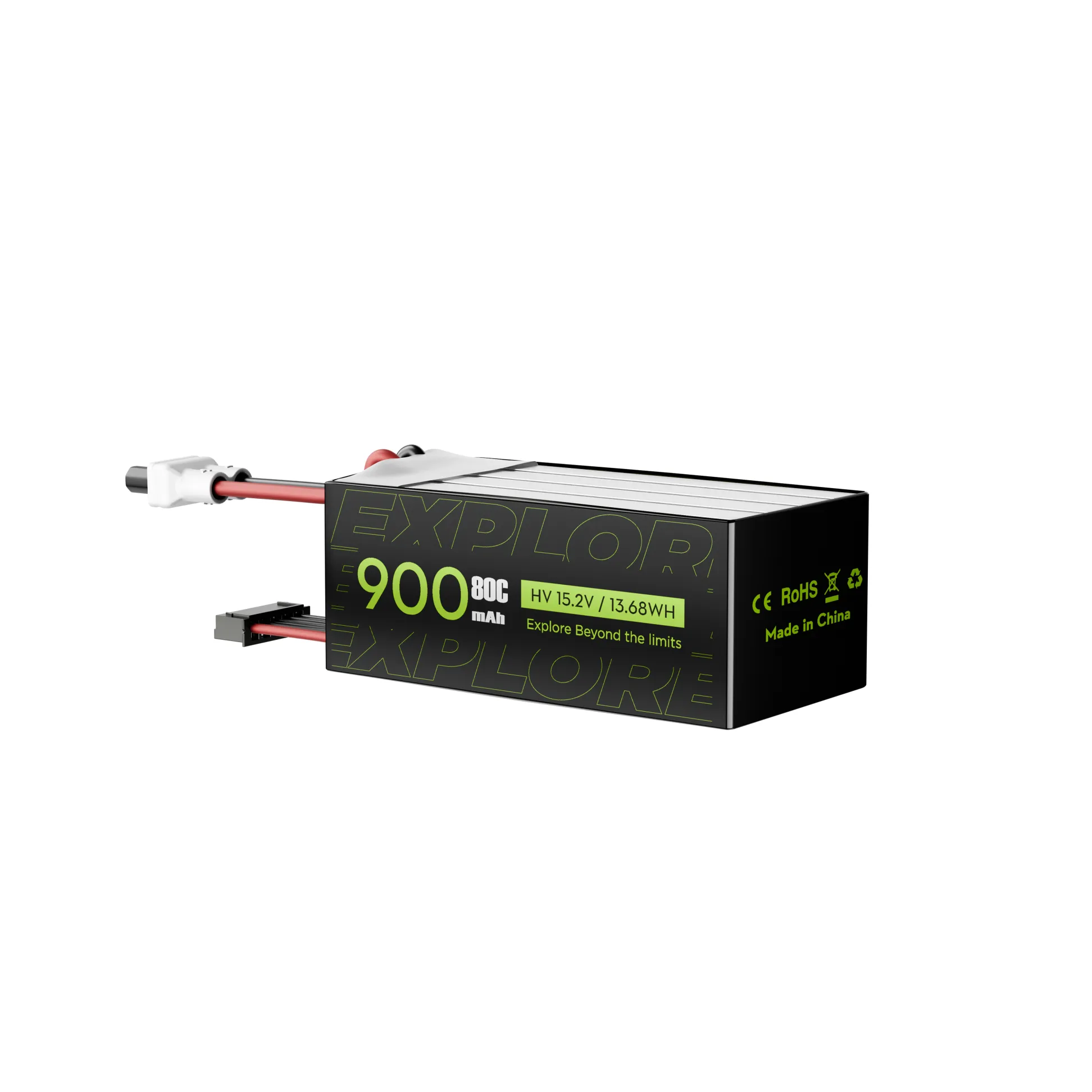 Flywoo Explorer 900mAh LiHV 4S 80C baterija su XT30UP jungtimi – galinga, patikima ir užtikrinanti ilgesnį skrydžio laiką bei stabilų energijos tiekimą mažiems dronams.