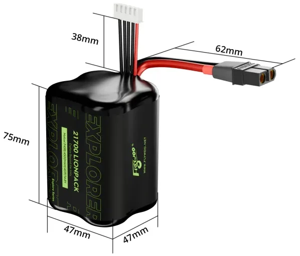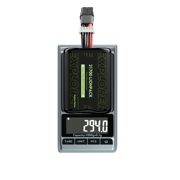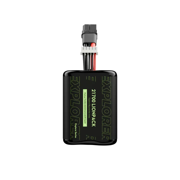 Flywoo Explorer 4S1P P45D 21700 4500 mAh BAK Lionpack baterija dronams ir RC įrangai, su aukštos kokybės BAK elementais, mažu vidiniu pasipriešinimu ir smūgius sugeriančia apsauga. Ji gali tiekti iki 35 A srovę ir veikia ekstremaliomis sąlygomis. Baterija turi XT60 jungtį patogiam ir stabiliam naudojimui.