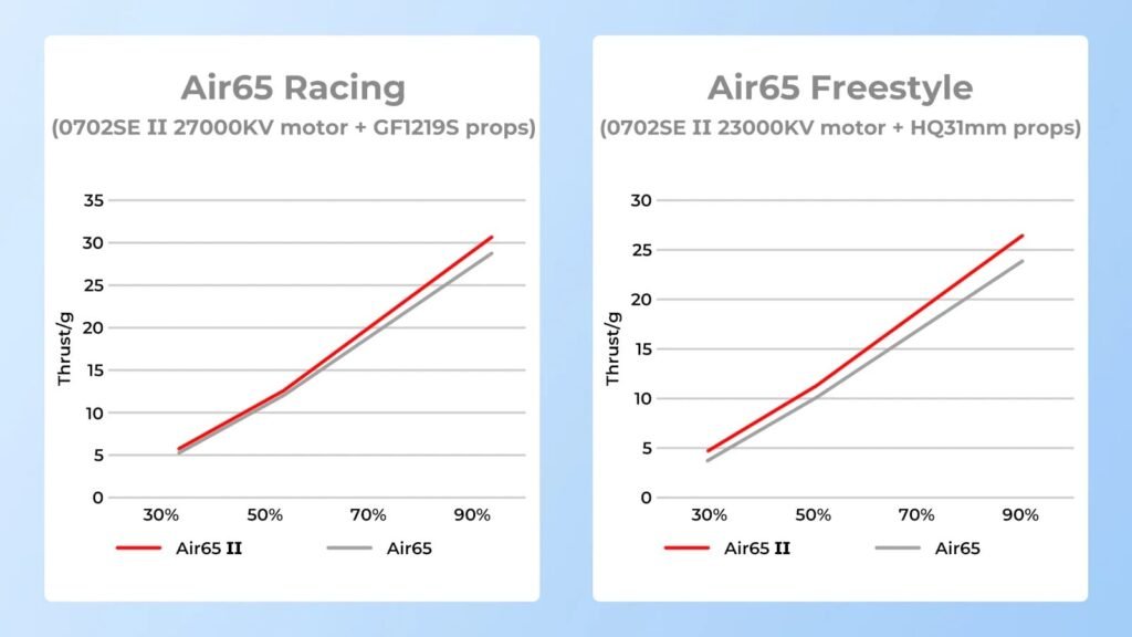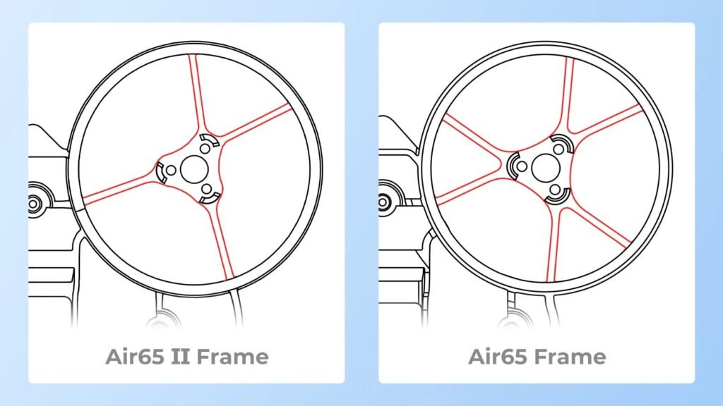 Sumažinus atramas nuo 6 iki 4 ir patobulinus kanalų (duct) aerodinamiką, Air65 II pasiekia 5 % didesnę trauką nei pirmosios kartos modelis.