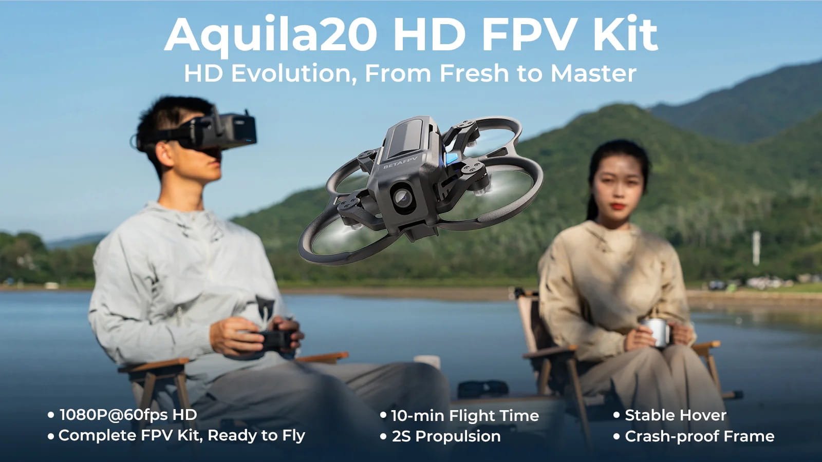 Aquila20 HD FPV rinkinys – tai paruoštas skrydžiui dronas su skaitmenine Full HD P1 vaizdo sistema, galinga 2S sistema ir iki 10 min. skrydžio laiku. 3 skrydžio režimai tinka tiek pradedantiesiems, tiek pažengusiems, o komplekte esantys LiteRadio 4 SE pultas ir VR04 HD FPV akiniai leidžia pradėti skristi iš karto.