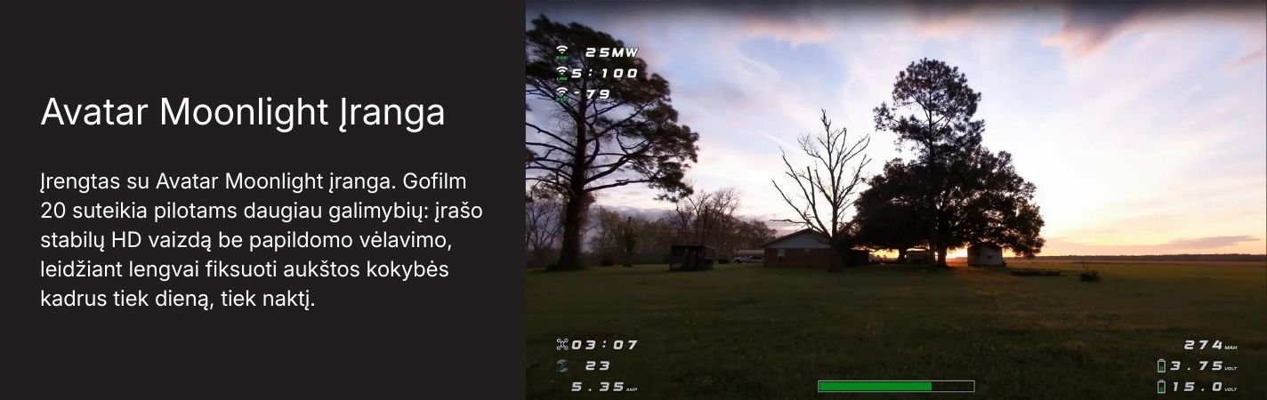 • Vaizdo perdavimo įrenginys (VTX): Moonlight Kit;