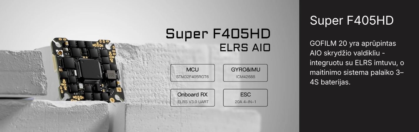 • ExpressLRS imtuvas: ELRS V3.0 UART;