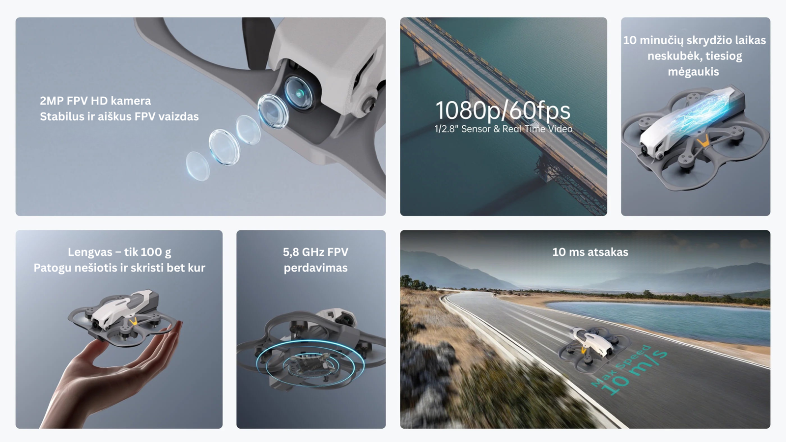 Pereik į kitą skrydžio lygį su Protos FPV dronu – šis mini dronas telpa delne, tačiau suteikia stulbinančio HD vaizdo kokybę, stabilų skrydį ir tikslų valdymą. Komplektas paruoštas skristi iš karto, todėl pradedantieji ir profesionalai gali mėgautis nuotykiais bet kur, be papildomos registracijos ar nuotolinio identifikavimo reikalavimų.
