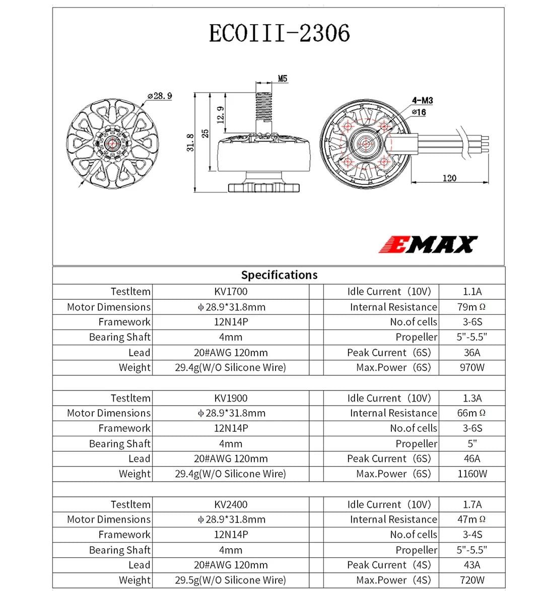 • Rekomenduojami propeleriai: 5″–5.5″;