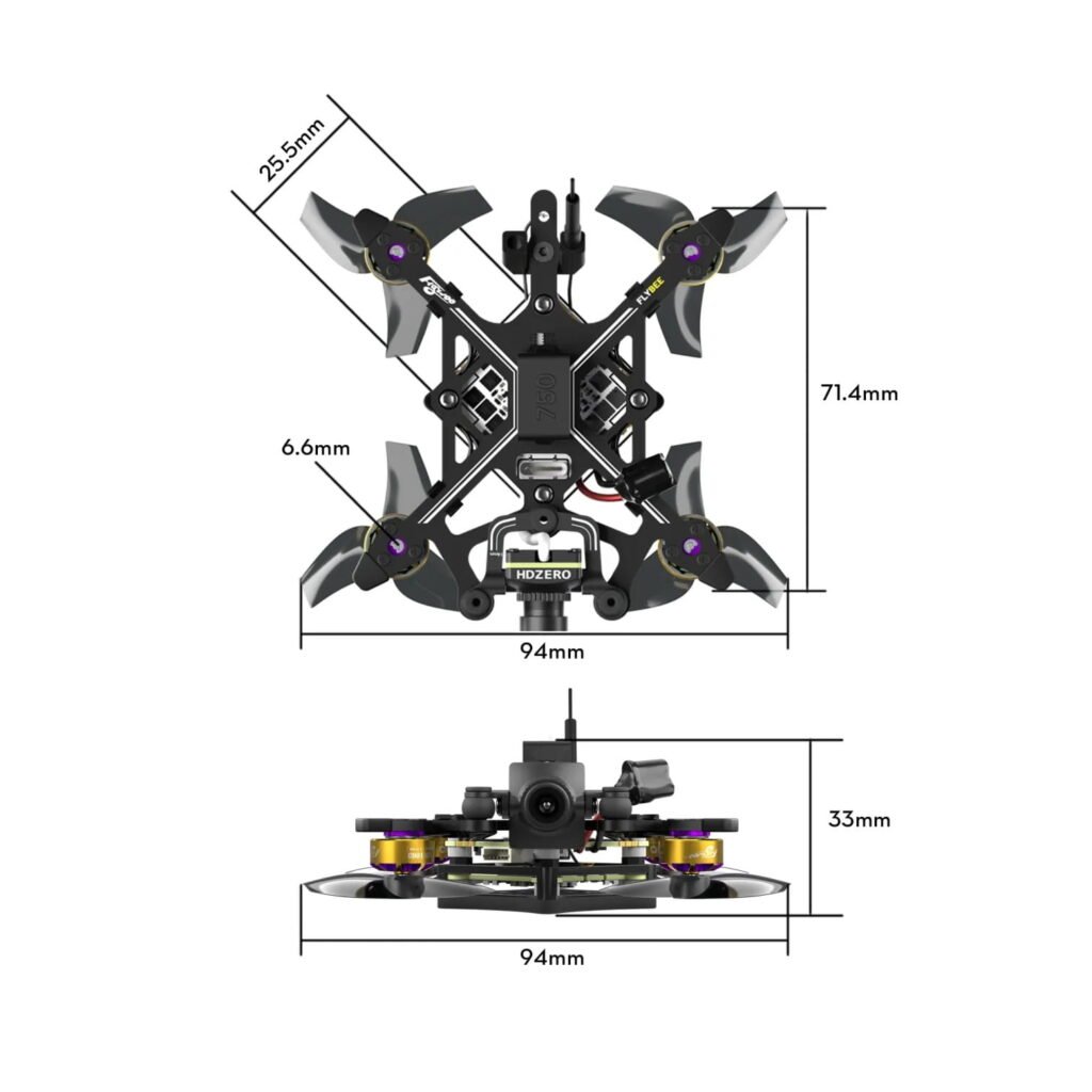 • Pritaikytas HDZero sistemai, Flybee užtikrina aukštos raiškos ir mažo vėlavimo vaizdo perdavimą;