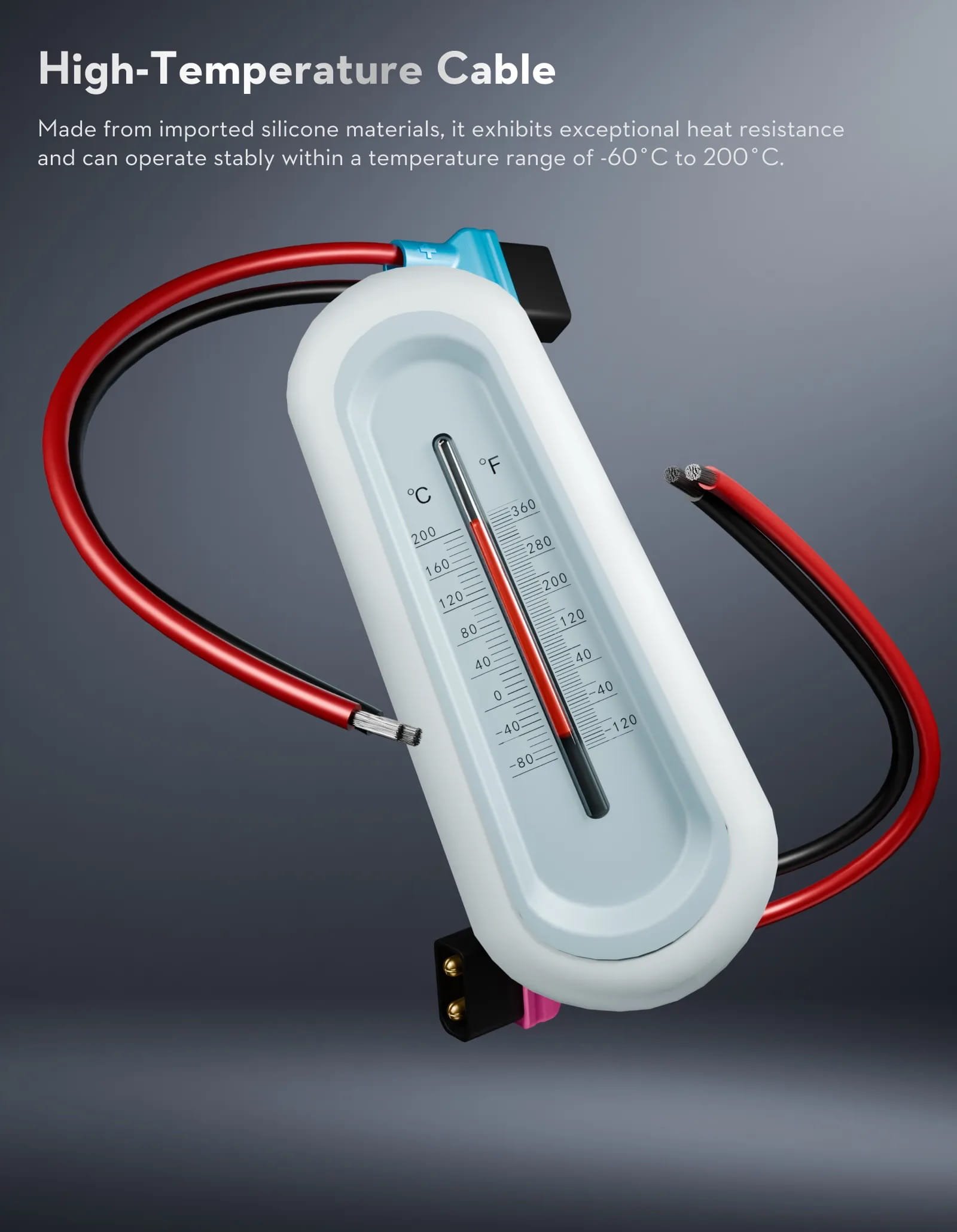 Pagamintas iš aukštos kokybės silikono, šis laidas pasižymi puikiu atsparumu karščiui ir stabiliai veikia itin plačiame temperatūrų diapazone – nuo –60 °C iki 200 °C.