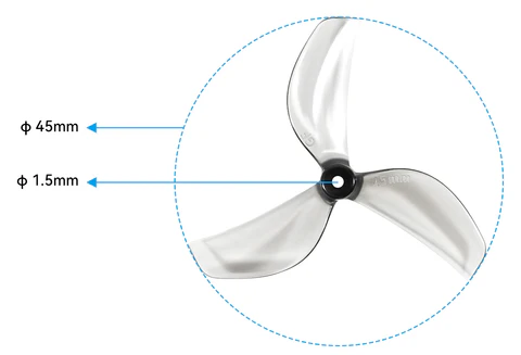 Gemfan 45 mm 3 menčių propeleriai 1.5 mm – patvarūs ir efektyvūs propeleriai FPV whoop tipo dronams, užtikrinantys didesnę galią ir greitį, todėl puikiai tinka lenktynėms. Suderinami su BETAFPV Meteor75 Pro rėmu.