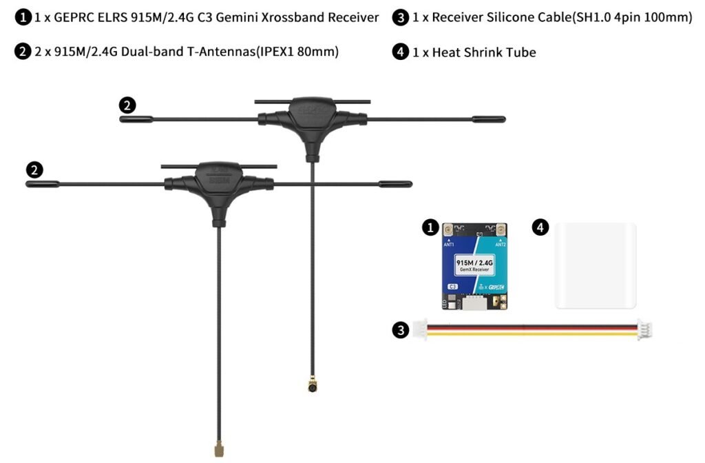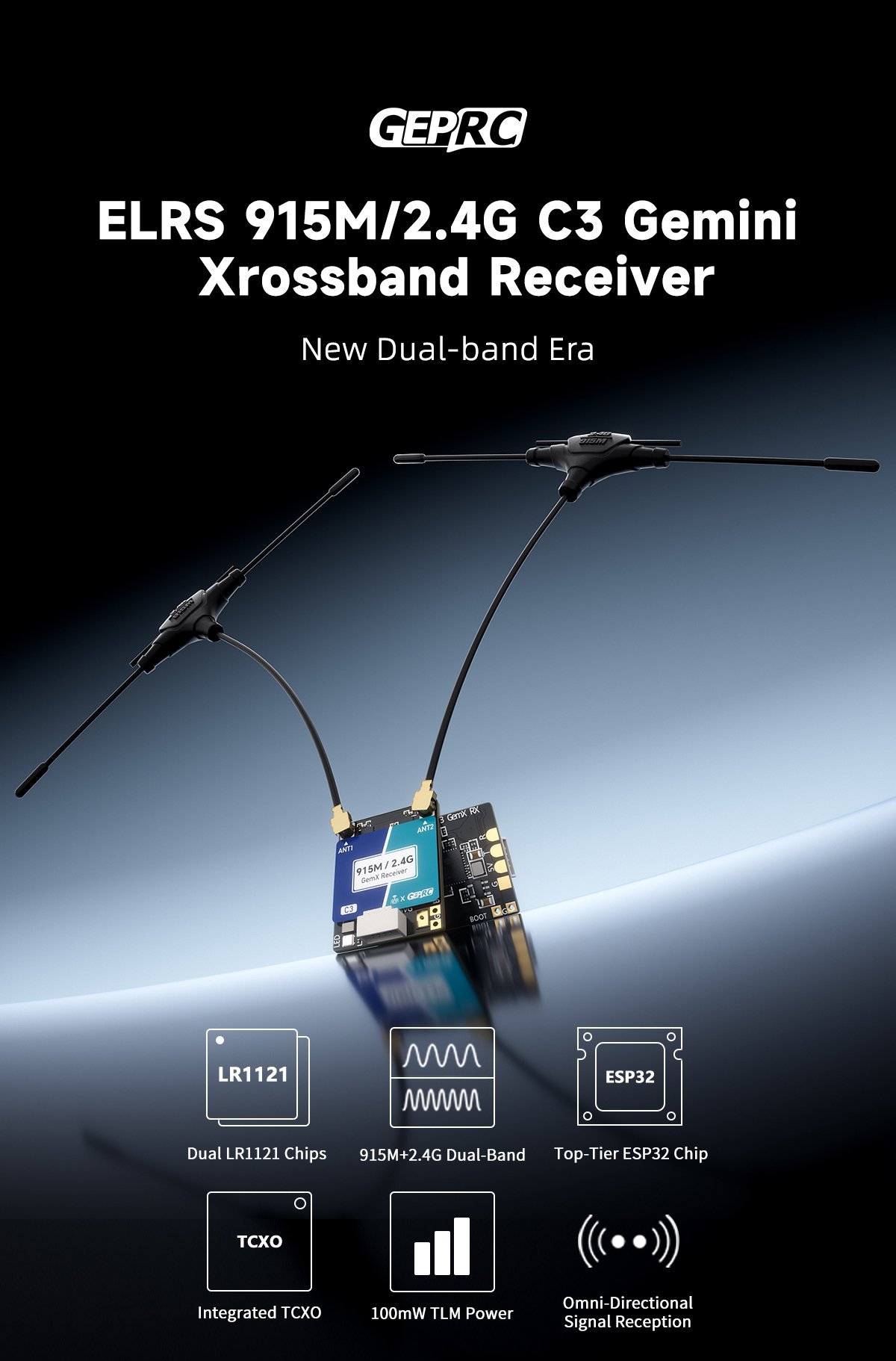 1x GEPRC ELRS 915M / 2.4G C3 Gemini Xrossband imtuvas;