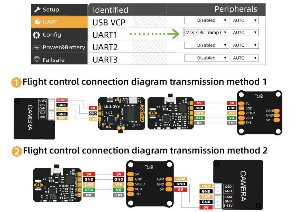 GEPRC RAD Tiny 5.8G 400mW VTX yra kompaktiškas ir lengvas, todėl lengvai telpa ankštose vietose.