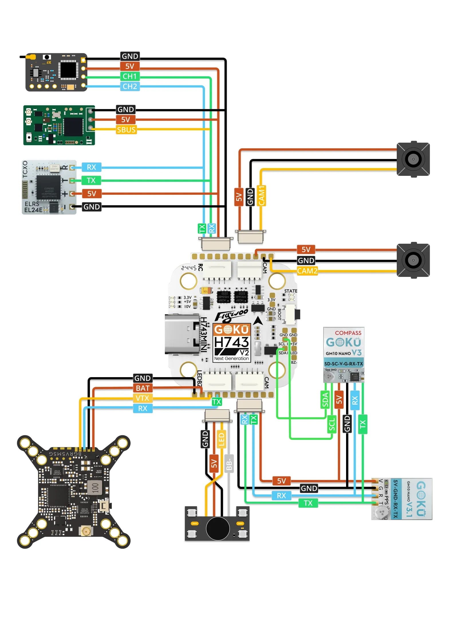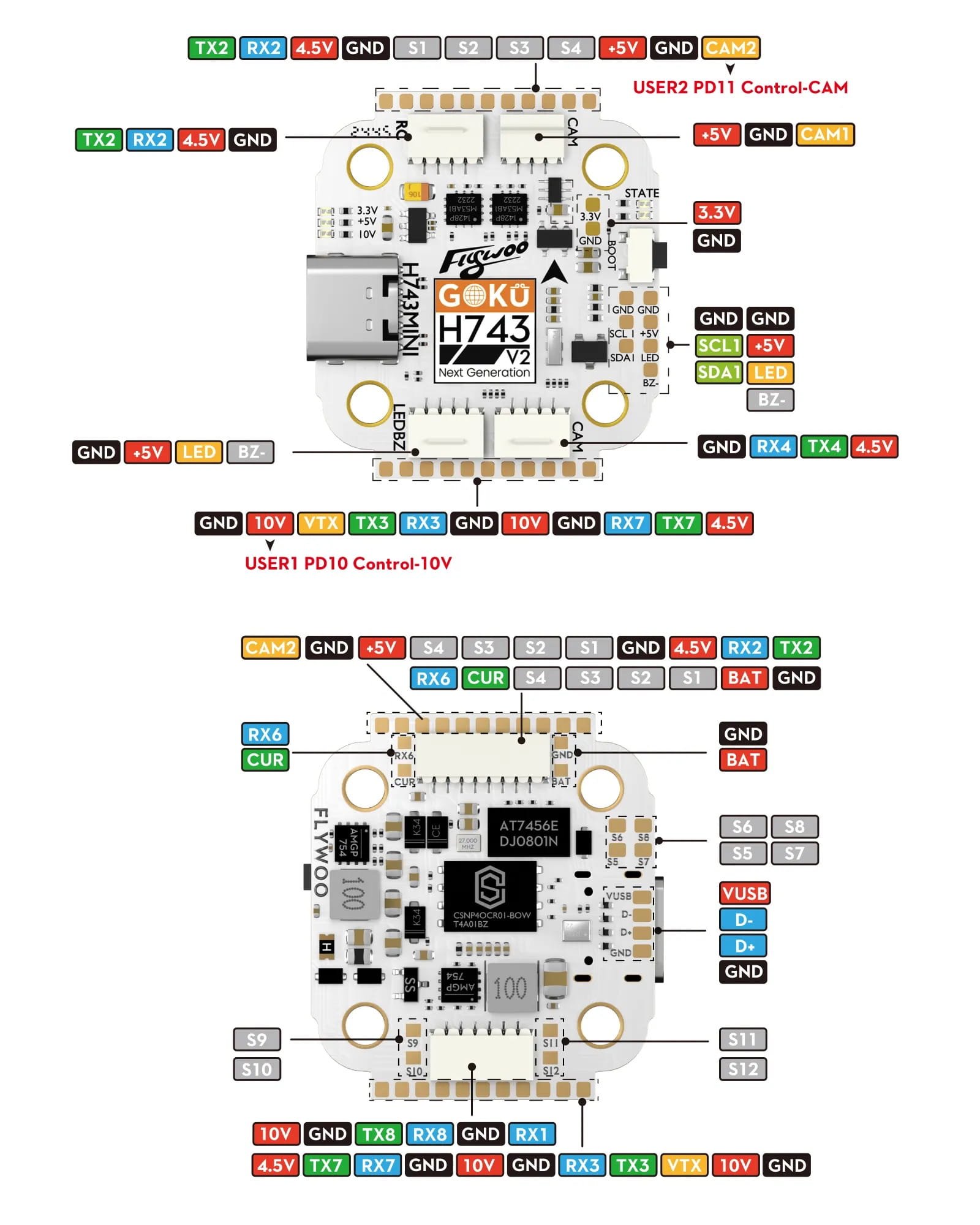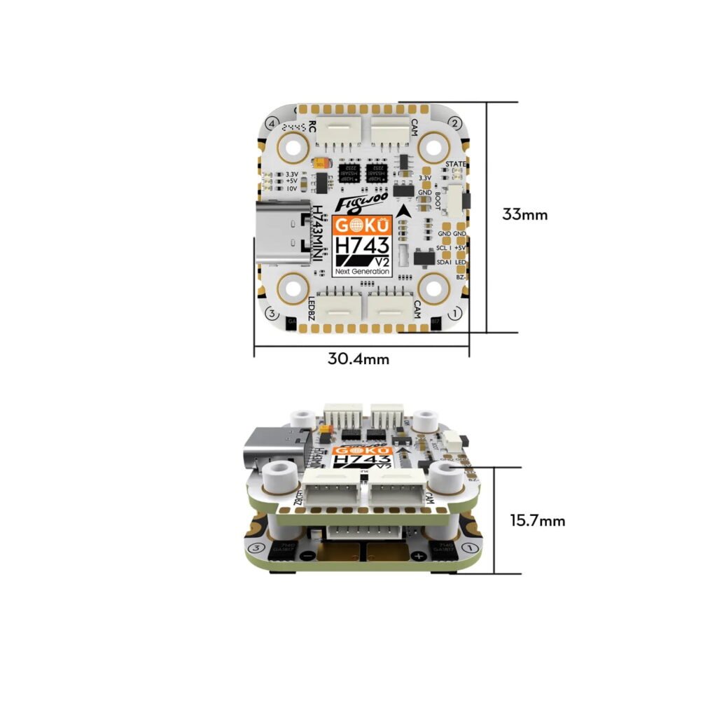Skrydžio stabilumas, reakcijos greitis ir FPV dronų išplečiamumas tiesiogiai priklauso nuo pagrindinio valdymo lusto našumo. Palyginti su STM32F722, STM32H743 yra naujos kartos didelio našumo MCU su reikšmingais pagrindinių parametrų patobulinimais, užtikrinančiais didesnį valdymo tikslumą, skrydžio stabilumą ir įrenginių suderinamumą.