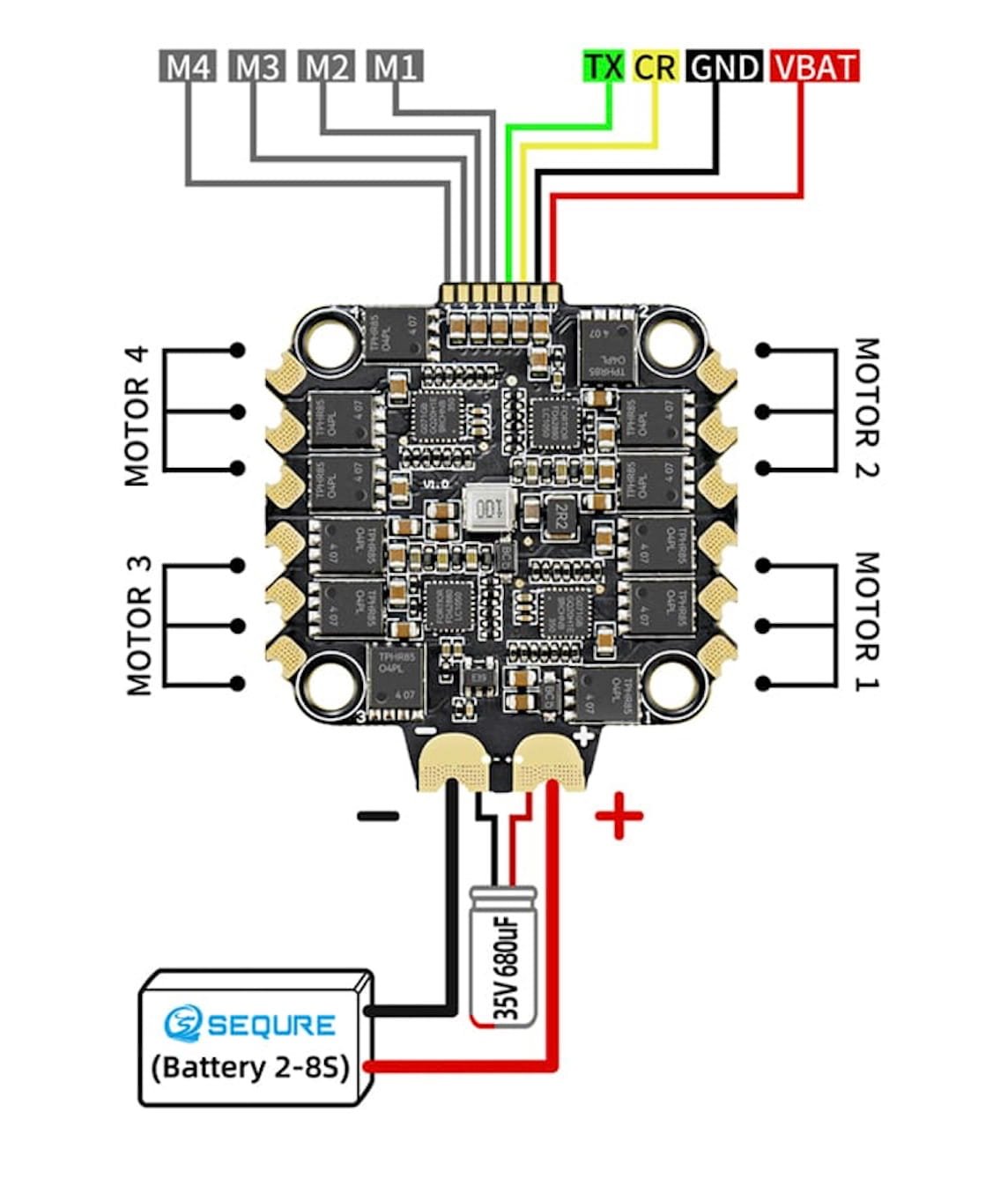 • Įėjimo įtampa: 4–8S LiPo / LiHV;