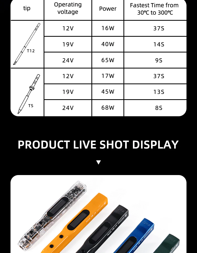 • Suderinamas tiek su trumpais, tiek su ilgais lituoklio antgaliais. Įrenginys veikia pagal „plug and play“ principą. Didžiausia darbinė temperatūra – 450 °C / 842 °F.